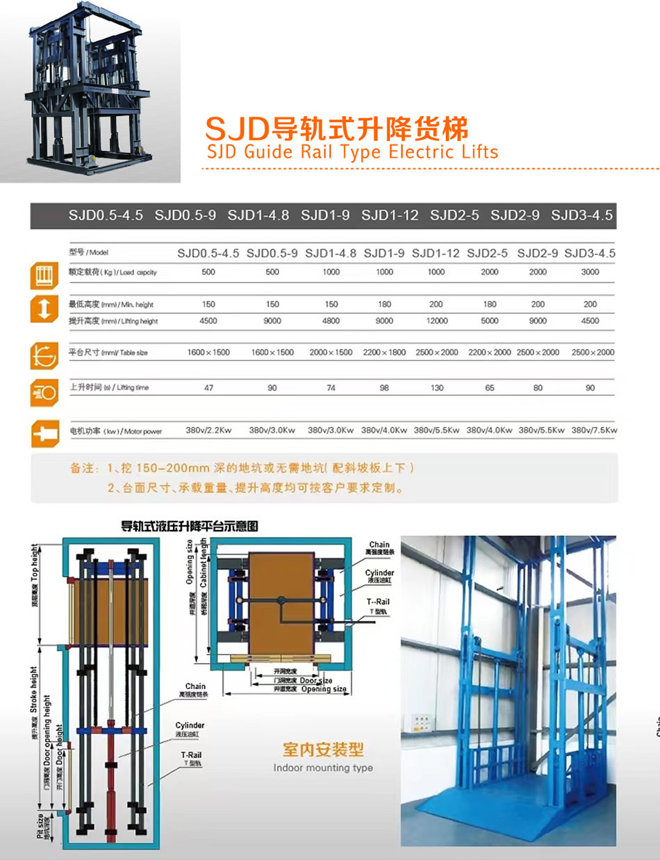 SJD Guide Rail Type Electric Lifts